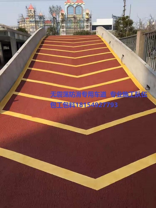 新型無震動(dòng)防滑車道較之傳統(tǒng)水泥坎及花崗巖或其他種類的車道,其*大特性是減少了車輛輪胎與車道間摩擦的噪音,降低了普通車道對(duì)汽車輪胎的損傷,阻尼性能強(qiáng),駕馭感舒適,起伏性低。彩色底紋和防滑層,既美觀,又對(duì)駕駛者具有警示減速作用,且用途廣泛