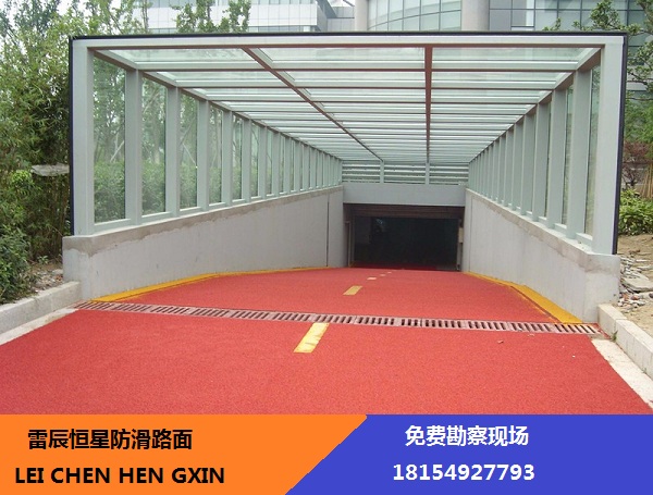 彩色防滑路面通過道路顏色的不同,提示駕駛者在規定的路面上行駛,從而避免了不同車輛的混行;提示駕駛人員前方的危險路段,并通過提供高摩擦力的面層來實現很好防滑效果;駕駛員駛入上述路段可以提前降低速度,并在緊急情況下,縮短剎車距離,避免惡性交通事故。彩色路面防滑系統是一種樹脂基路面防滑系統,包括特殊配方的樹脂基黏合劑和各種不同規格的骨料,以準確的數量涂敷于各種路面。此種路面不僅對景觀美化和道路安全方面有著明顯的改進,同時因其面層耐磨耗,可以對普通路面起到延長壽命的作用。彩色防滑路面的引入,對改善我國交通惡化的現狀,有著積極深遠的意義。
